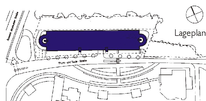 Das direkt an der Grenze zum anschließenden Landschaftsraum errichtete Parkhaus ist Bestandteil des Gewerbe- und Industrieparks Nordost in Nürnberg.