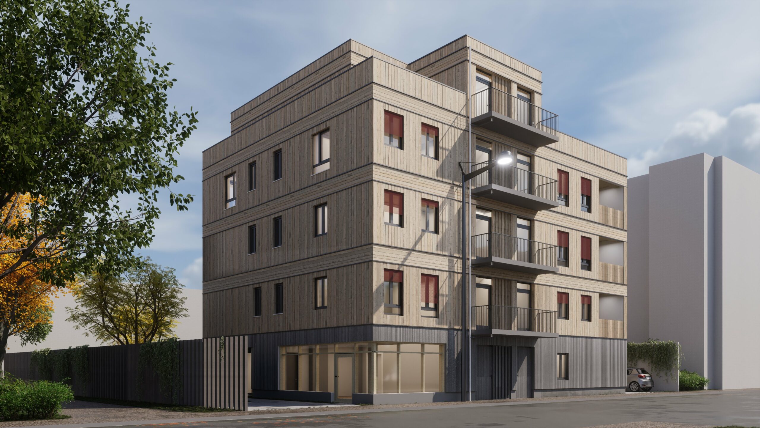 Das neue Wohngebäude soll freistehend mit einem Treppenhaus und einer zentral angeordneten Aufzugsanlage errichtet werden. Insgesamt sind 11 Wohneinheiten untergebracht, dabei bieten unterschiedliche Grundrisse vielfältige Nutzungsmöglichkeiten.