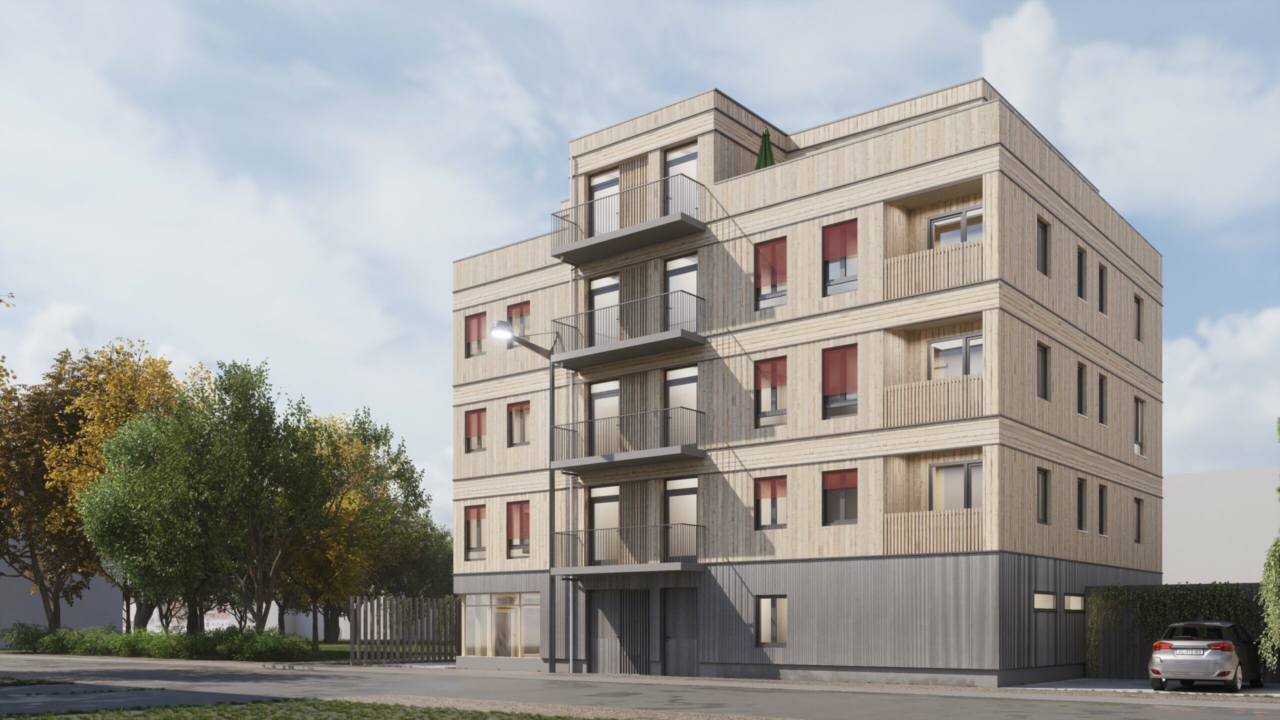 So sollen im Erdgeschoss Vereins- und Begegnungsräume entstehen, die sich durch eine großzügige Verglasung der Fassadefront mit seiner funktionalen Wirkung nach außen manifestieren. Im 1. bis 3. Obergeschoss sind jeweils drei Wohneinheiten geplant, die zwischen 38 qm bis 95 qm variieren können. Mit zweiWohnungen im Staffelgeschoss wird das Mehrfamilienhaus im 4. Obergeschoss abgeschlossen